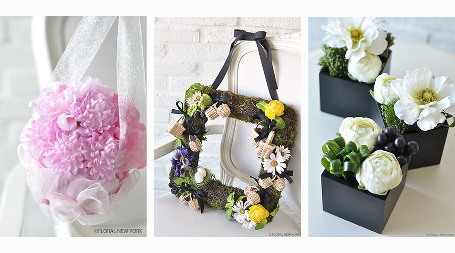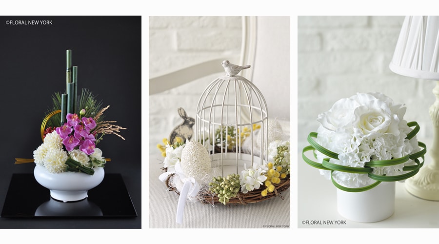 ・独自のテクニックとメソッドを駆使したアーティフィシャルフラワーアレンジメント6種類